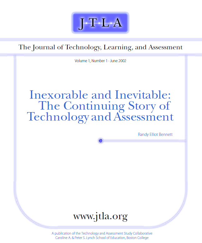 Bennett, R. E. (2002). Inexorable and Inevitable: The Continuing Story of Technology and Assessment. The Journal of Technology, Learning and Assessment, 1(1). Retrieved from https://ejournals.bc.edu/index.php/jtla/article/view/1667