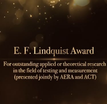 Named in honor of an outstanding scholar and researcher, this annual award is presented jointly by the American Educational Research Association and ACT in recognition of outstanding applied or theoretical research in the field of testing and measurement. The award is meant to acknowledge a body of research of an empirical, theoretical, or integrative nature rather than a single study. Although the research is not required to have led directly to improved educational practices, it should nevertheless be rich in suggestions for additional research that does hold such promise. Particular emphasis will be given to research that has advanced the companion goals of greater understanding and improved use of testing and measurement techniques. Awardees may include individuals conducting research in a broad array of disciplines, such as education and psychology.